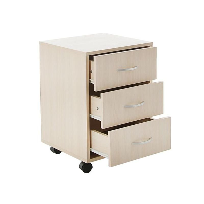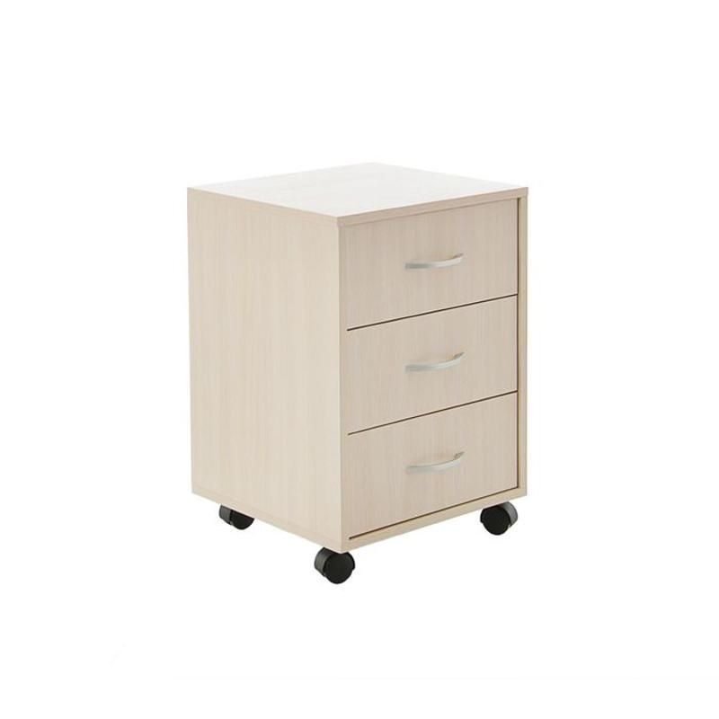 Тумба произведена в России из экологически чистого материала - ЛДСП. Тумба имеет три ящика для хранения различных предметов и колесики для удобства перемещения.