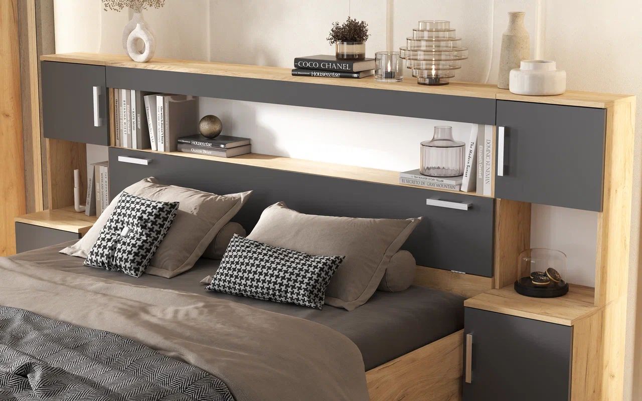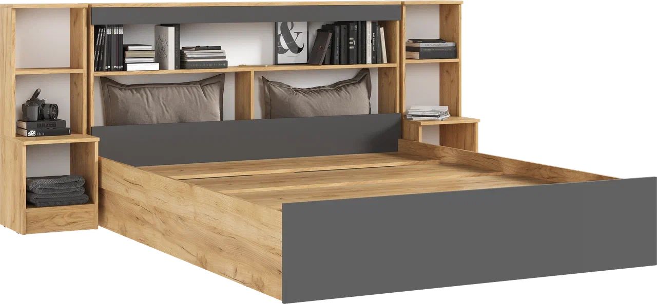 Спальня Бася 1600х2000 Графит/Дуб крафт