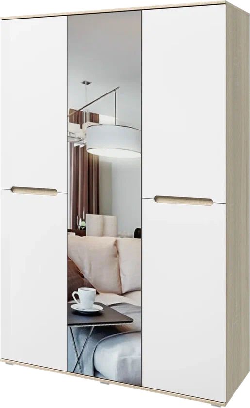 Шкаф для одежды 3-х дверный 1500х2236х524 мм - 1 шт., Комод 850х910х446 мм - 1 шт., Тумба прикроватная 500х350х374 мм - 2 шт., Зеркало 850х500х32 мм - 1 шт.,Кровать 1,4м: 1435х800х2053мм - 1 шт. |