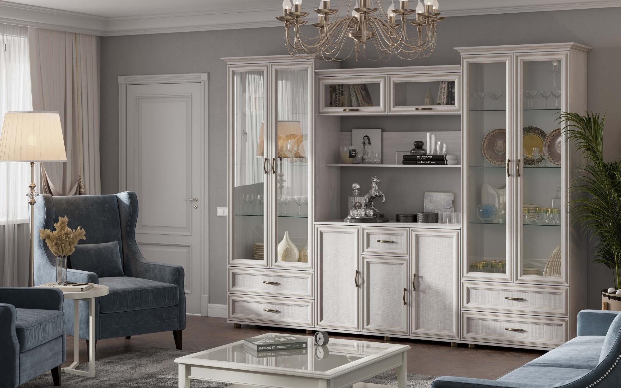 Шкаф со стеклом (800х2126х445) Тумба (1200х866х445) Полка навесная (1200х270х266) Шкаф навесной (1200х316х345) |