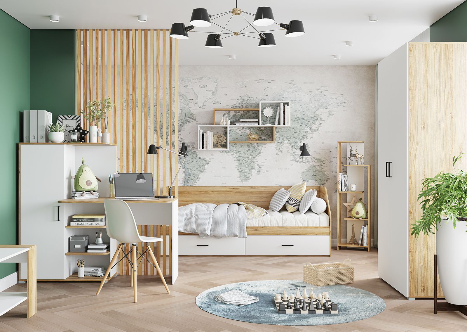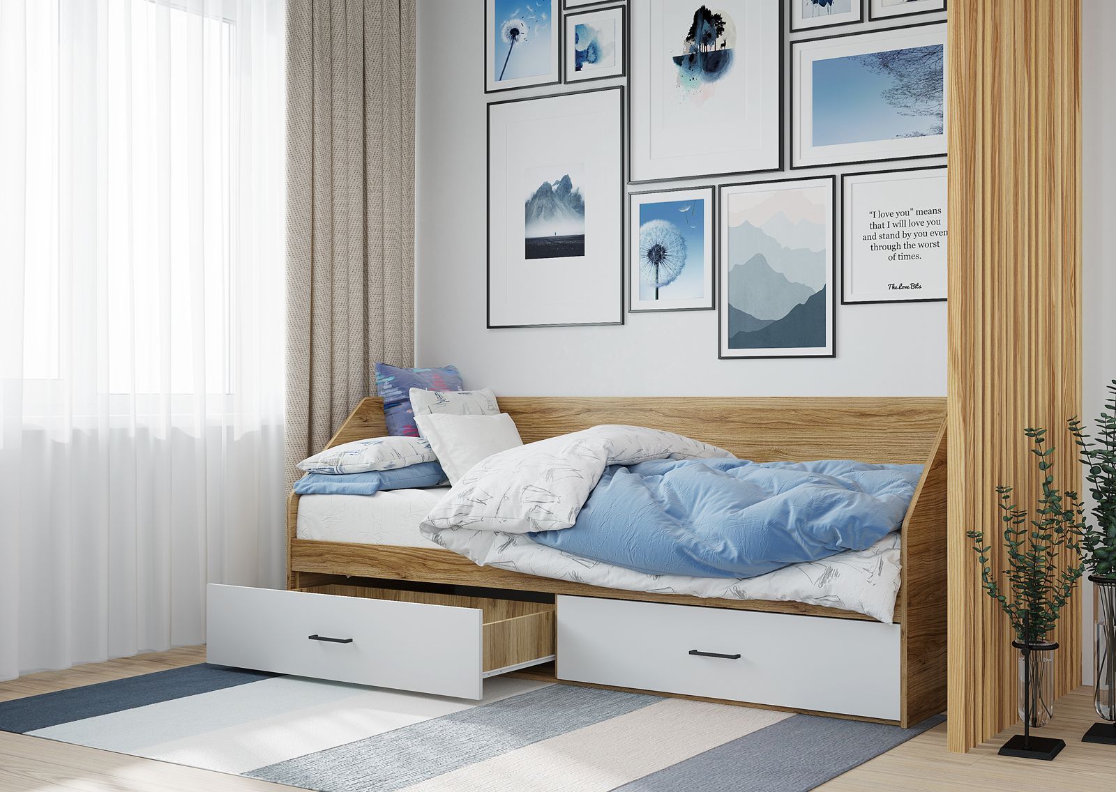 Кровать Лайт 800/2 ящика, цвет Дуб золотой/Белый