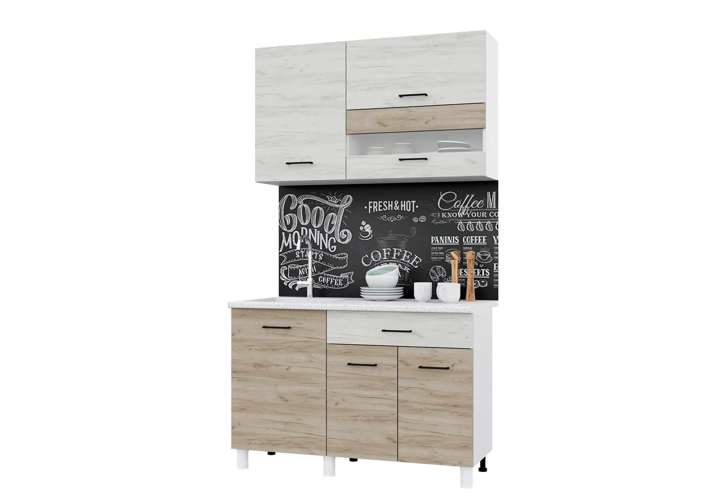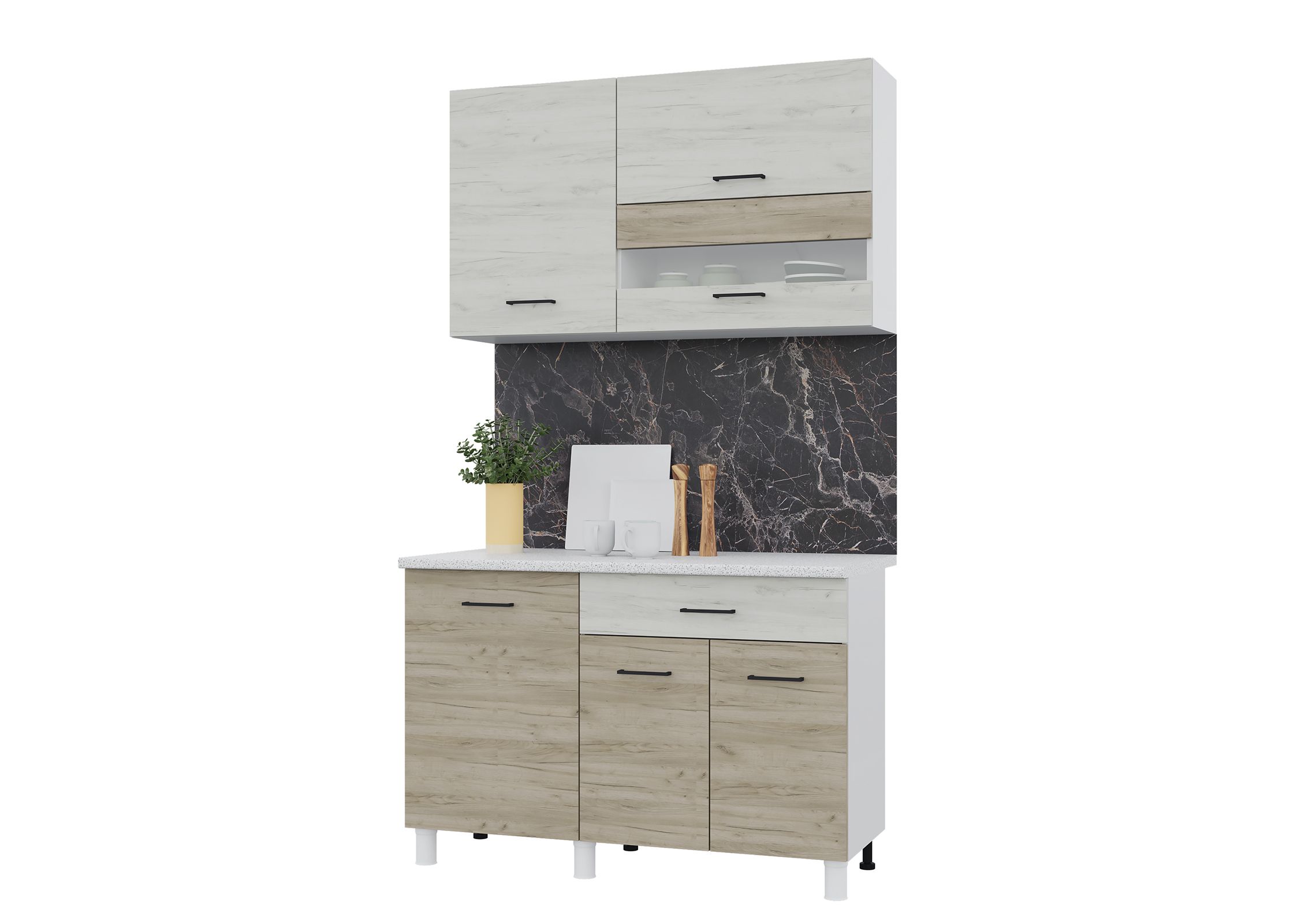 Кухня Trend 1200, цвет Белый/Крафт белый-Крафт серый