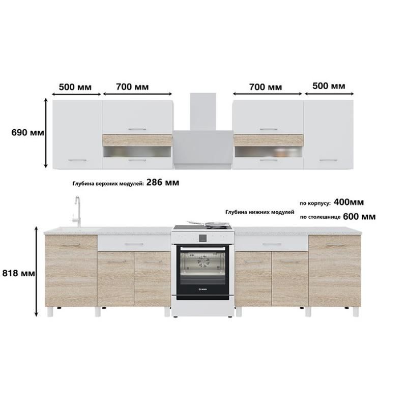 Кухонный гарнитур Тренд 2400, Белый/Сонома/Белый