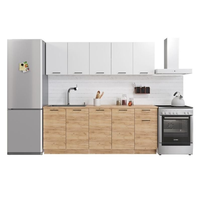 Напольный кухонный шкаф производится в России и имеет габариты 800 мм x 510 мм x 820 мм. Шкаф выполнен из ЛДСП, а фасад выполнен из ЛДСП. Шкаф доступен в белом и дуб крафт золотой цветах.