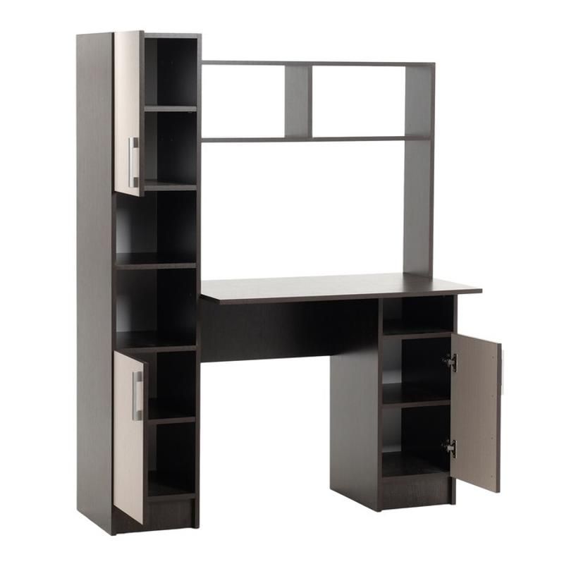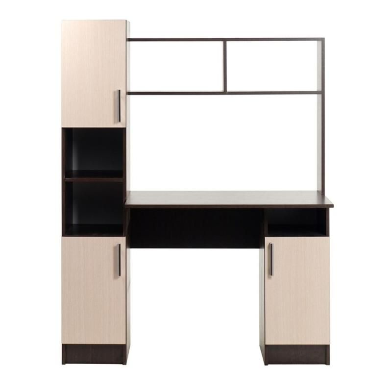 Корпус и столешница стола изготовлены из ЛДСП, что обеспечивает ему прочность и долговечность. Стол имеет цветовое исполнение в белфорт и венге, что придает ему элегантный и современный вид.