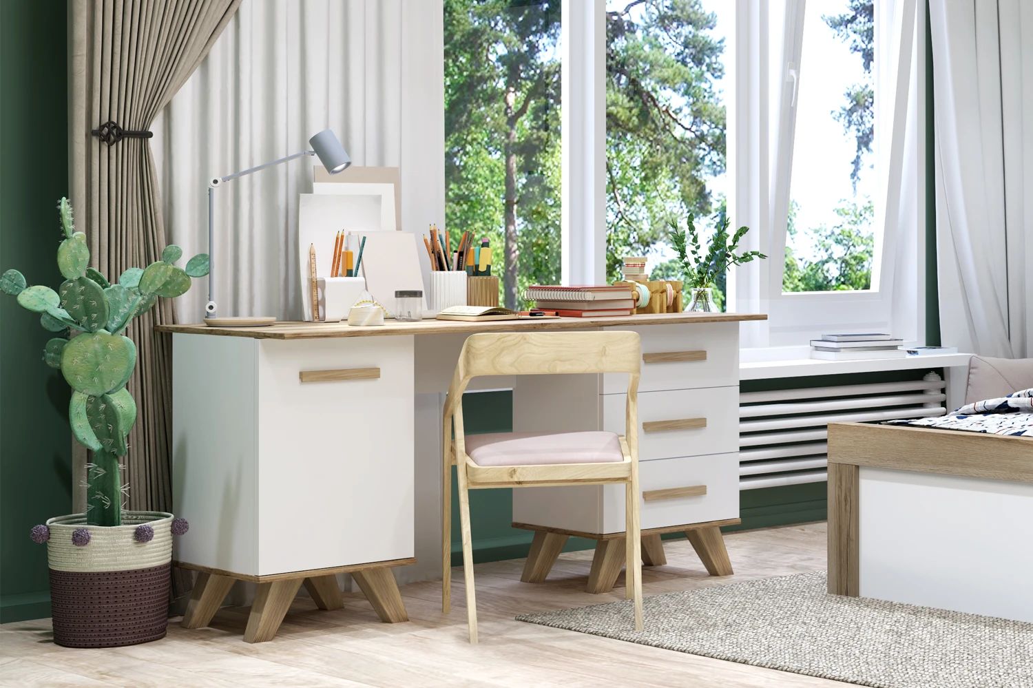 Стол письменный 1400 Вега Скандинавия, цвет Белый / Дуб Каньон