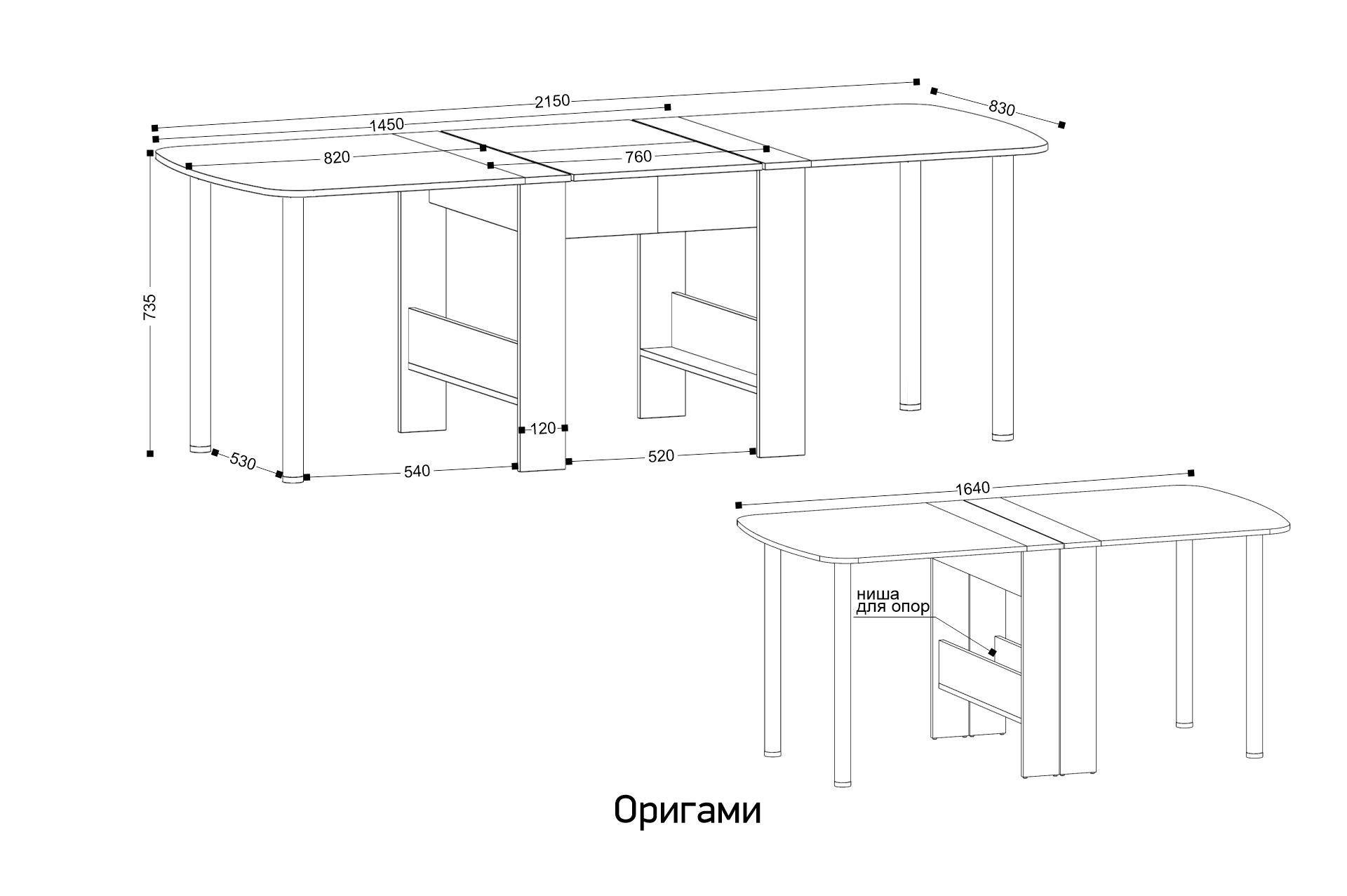Длина столешницы в разложенном виде, см