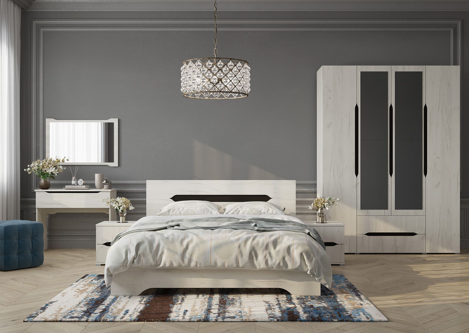 Туалетный столик “Вега” прекрасно сочетается с другими элементами мебели из этой серии, такими как прикроватные тумбы, комоды и шкафы. Он станет отличным дополнением к любому интерьеру и поможет создать уютную атмосферу в вашей спальне.