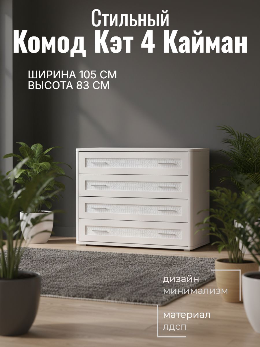 Комод Кэт 4 Кайман белый и Бодега белая, ширина 105 см, с ящиками, в спальню, в гостиную