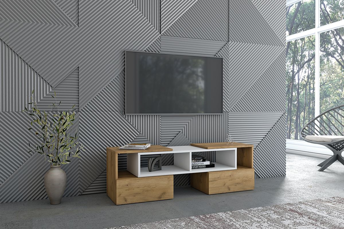 Тумба под телевизор — это стильное и функциональное решение для вашего дома. . Эта напольная тумба способна стать настоящим центром внимания в гостиной, благодаря своему современному дизайну и продуманной компоновке. Изготовленная из качественных материалов, тумба под телевизор гарантирует долговечность и надежность. Она отлично вписывается в концепцию мебели для дома, сочетая в себе практичность и эстетическое удовольствие. Вы можете использовать ее не только как тумбу под телевизор, но и как универсальную консоль для дизайнерских акцентов, книг или декоративных элементов. Тумба под телевизор напольная имеет достаточно пространства для размещения вашего телевизора, а также дополнительных компонентов: приставок, плееров и других аксессуаров. Верхняя полка идеально подходит для телевизора, а внутренние отсеки и открытые полки позволяют легко организовать пространство. Также данная тумба станет отличным решением для тех, кто ищет стильную тумбочку под телевизор в кухню или тумбу в прихожую для размещения мелких предметов. Внешний вид тумбы можно легко адаптировать под любой интерьер, будь то классика, современный стиль или минимализм. Ее лаконичные линии и элегантные ручки подчеркивают индивидуальность и создают ощущение гармонии. Не упустите возможность дополнить свой интерьер этой универсальной тумбой! Ее функциональность и стиль делают отличным выбором для всех, кто ценит качество и эстетику в мебели. Придать вашему дому завершенный и аккуратный вид несложно: просто добавьте тумбу под телевизор в ваше пространство, и вы не пожалеете о своем выборе!