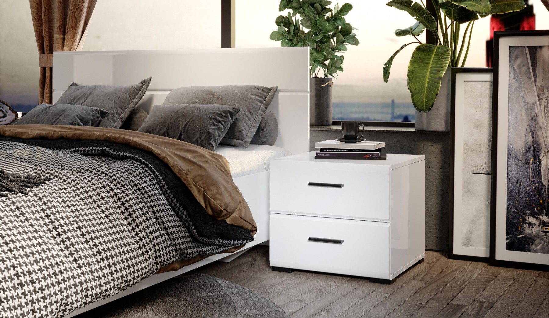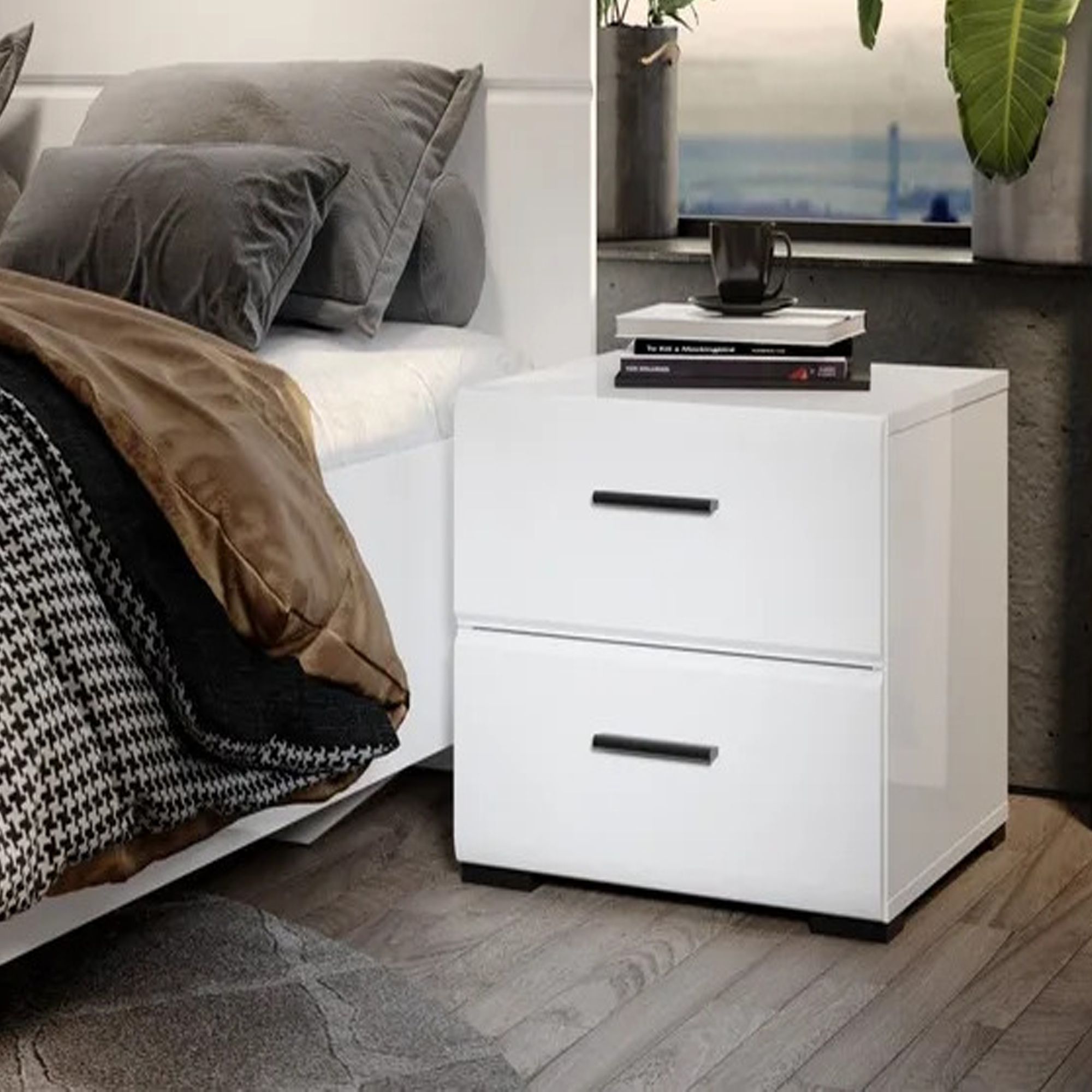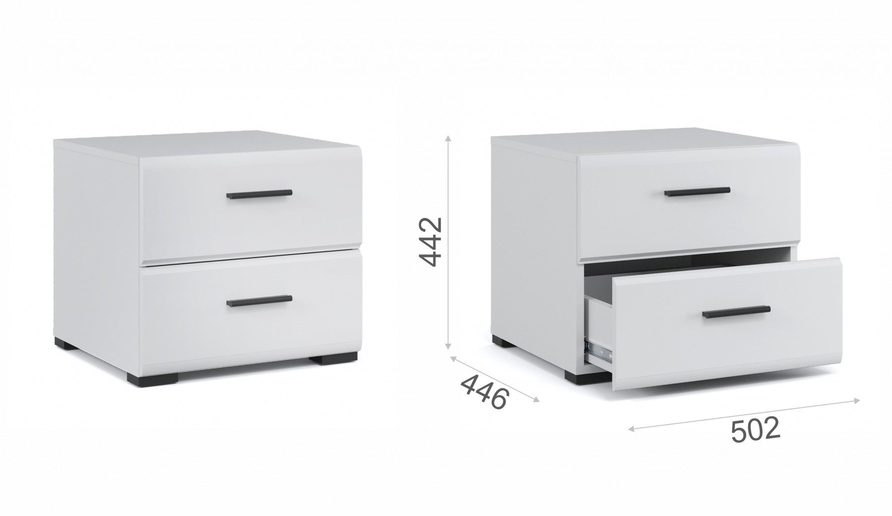 Тумба прикроватная Йорк Белый / белый глянец, ширина 50.2 см, высота 44.2 см, для спальни, с ящиками
